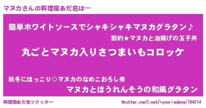 | ポケモン風あだ名 | 『マーヌイ』『ヒマヌカ』『マヌゴンZ』 |