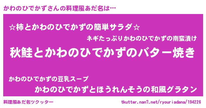 | ヘコむあだ名 | 『かわのひでかず(小並感)』『かわもー』 |