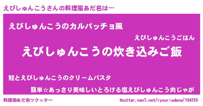 | 意味不明あだ名 | 『住所不定無職えびしゅんこう(50歳)』 |