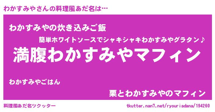 | 胡散臭い通販商品みたいなあだ名 | 『絶対に幸福をもたらす健康食品…その名も「わかすみや」』 |