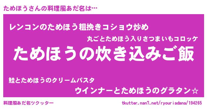 | ヒーロー風カッコイイあだ名 | 『最強戦士タメホウ』『仮面タメダー』 |