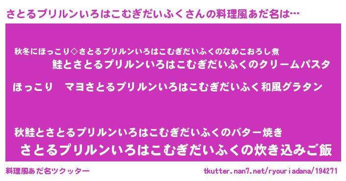 | 男性向けラノベタイトル風あだ名 | 『この素晴らしい世界にさとるプリルンいろはこむぎだいふくを!』 |