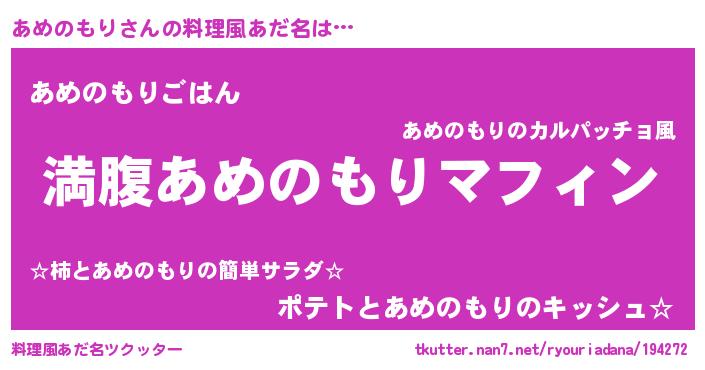 | ヘコむあだ名 | 『あめのもり(小並感)』『あめっ子』 |