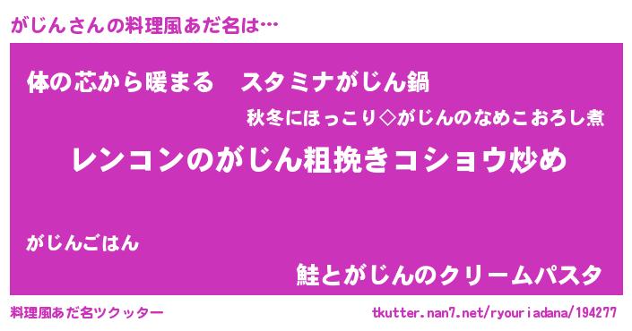 | 胡散臭い通販商品みたいなあだ名 | 『テレビで話題の高麗人参…その名も「がじん」』 |