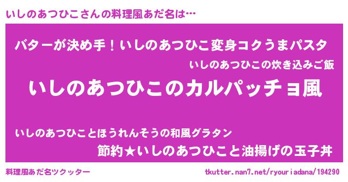 | 欧米人風あだ名 | 『ダレノガレいしのあつひこ』 |