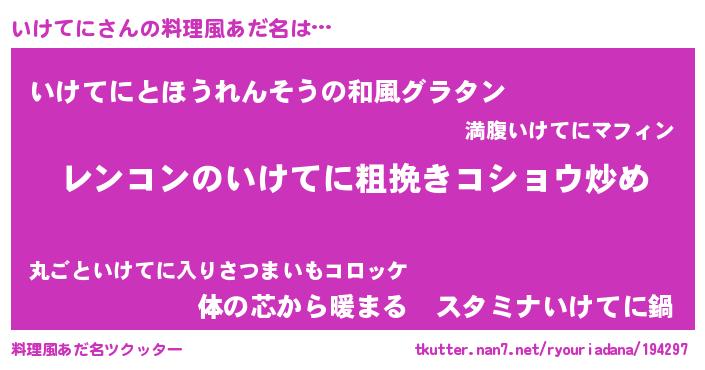 | 意味不明あだ名 | 『自称いけてに』『なめこ科いけてに属』 |