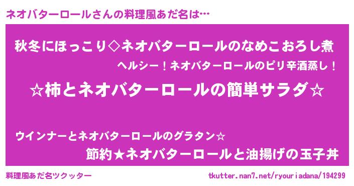 | 恥ずかしいあだ名 | 『プリティーネオバターロール』 |