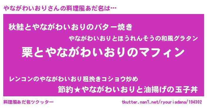 | 胡散臭い通販商品みたいなあだ名 | 『来世でも幸せになれる健康食品…その名も「やながわいおり」』 |