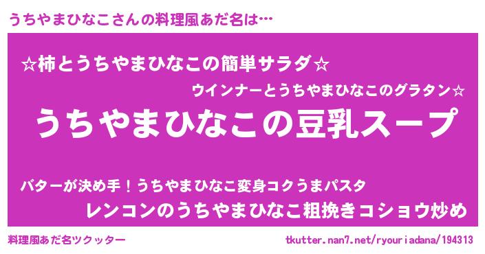 | 意味不明あだ名 | 『とにかく怪しいうちやまひなこ』 |