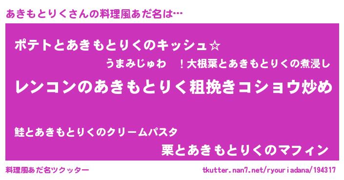 | 意味不明あだ名 | 『自称あきもとりく』 |