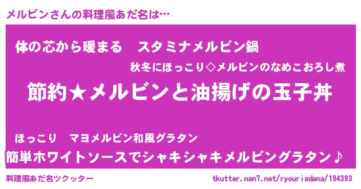| 男性向けラノベタイトル風あだ名 | 『メルビンの憂鬱』 |