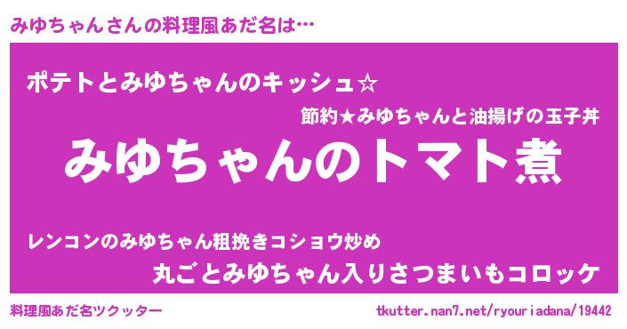 | ヘコむあだ名 | 『みゆお』『みゆもー』『なまこ酢』 |