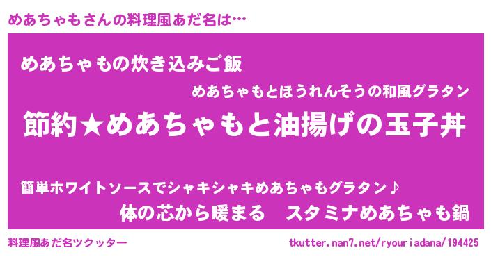 | 男性向けラノベタイトル風あだ名 | 『めあちゃもの憂鬱』 |