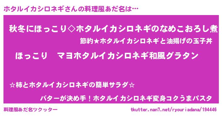 | 意味不明あだ名 | 『住所不定無職ホタルイカシロネギ(91歳)』 |