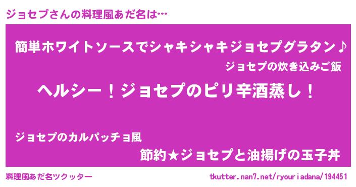 | 男性向けラノベタイトル風あだ名 | 『Re:ジョセプから始める異世界生活』 |
