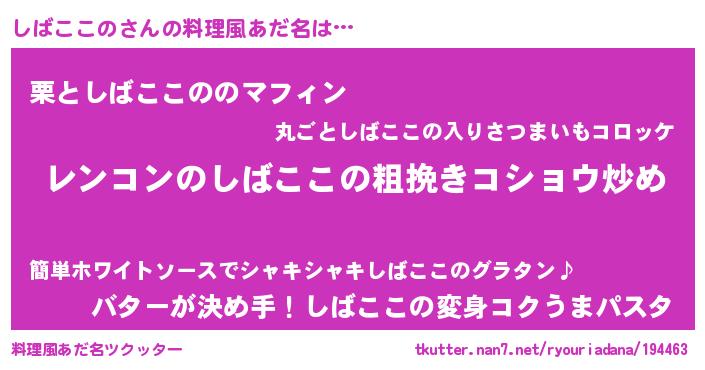 | 胡散臭い通販商品みたいなあだ名 | 『ガンによく効くアガリクス…その名も「しばここの」』 |