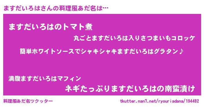 | 男性向けラノベタイトル風あだ名 | 『ますだいろはの嫁は女の子じゃないと思った?』 |