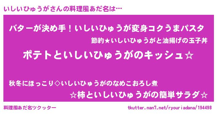| ポケモン風あだ名 | 『ヒイシイヒュウガ』『イックウザ』 |