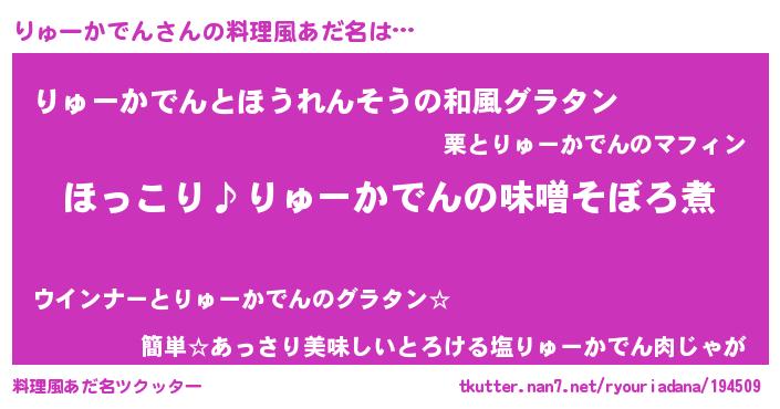| ヘコむあだ名 | 『りゅにゅー』『りゅーかでん(笑)』 |