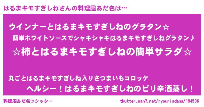 | 男性向けラノベタイトル風あだ名 | 『緋弾のハルマキモスギシネ』 |