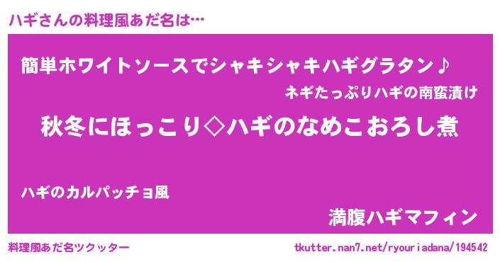 | ピコ太郎風あだ名 | 『ハギ太郎』『ピコハ郎』『ハコ八郎』 |