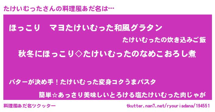 | 男性向けラノベタイトル風あだ名 | 『たけいむったに滅ぼされるだけの簡単なお仕事です』 |