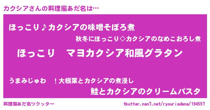 | 意味不明あだ名 | 『住所不定無職カクシア(79歳)』 |