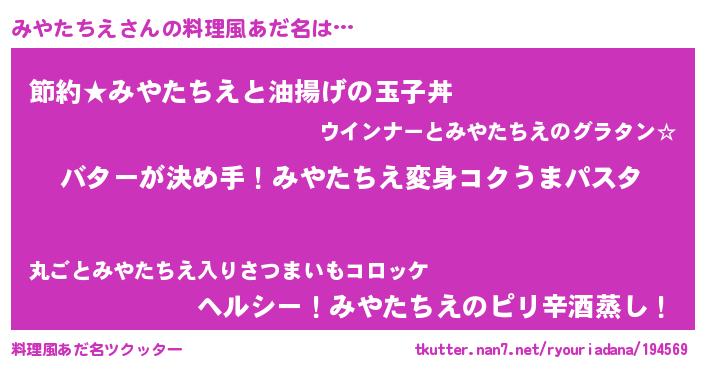 | ヒーロー風カッコイイあだ名 | 『愛の使者みやたちえ』『仮面ミヤダー』 |
