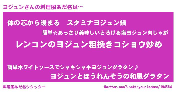 | ヘコむあだ名 | 『豆乳』『ヨジュン(苦笑)』 |