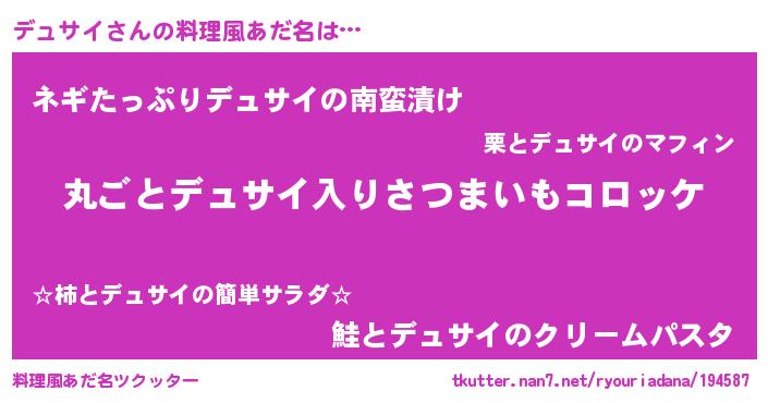 | ヘコむあだ名 | 『デュもー』『デュサイ(笑)』『豆乳』 |