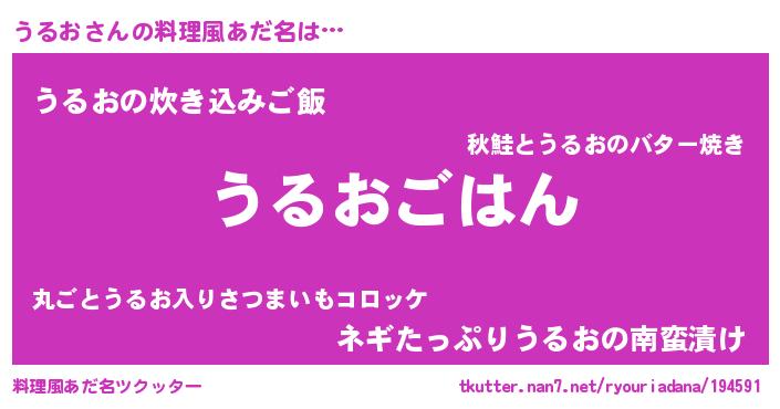 | 男性向けラノベタイトル風あだ名 | 『転生したらうるおだった件』 |