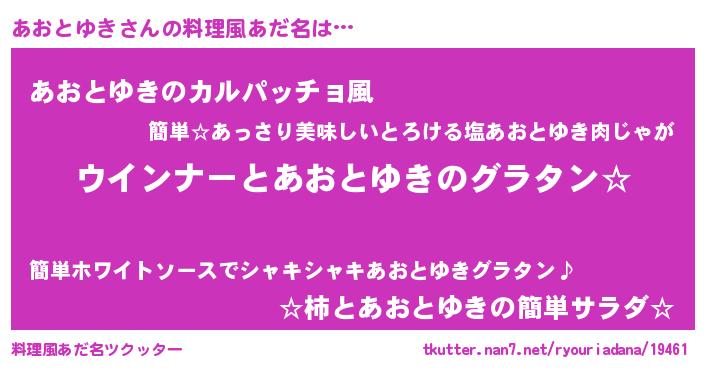 | ヘコむあだ名 | 『豆乳』『あおとゆき(遠い目)』 |