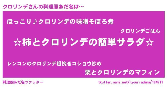 | 意味不明あだ名 | 『ペロリンクロリンデ』『自称クロリンデ』 |