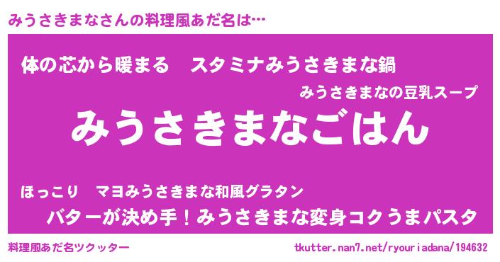 | ポケモン風あだ名 | 『ミウキング』『ミウサダネ』 |