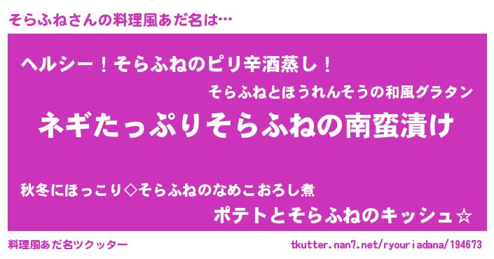 | 意味不明あだ名 | 『ペロリンそらふね』『自称そらふね』 |
