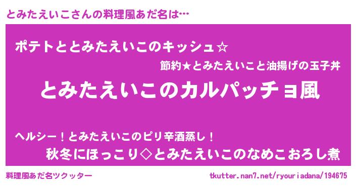 | 男性向けラノベタイトル風あだ名 | 『魔弾の王ととみたえいこ』 |