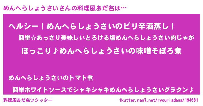 | 2回繰り返すあだ名 | 『めんめん』『もみもみ』『ぬれぬれ』 |