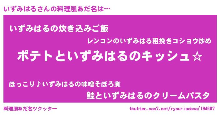 | 恥ずかしいあだ名 | 『イズリンリン』『ボンバーヘッドいず』 |
