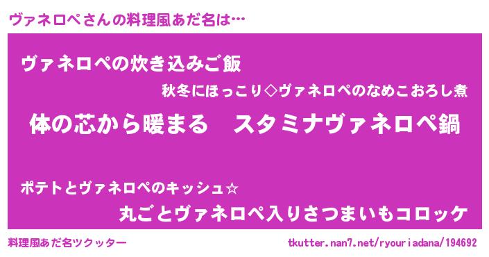 | 欧米人風あだ名 | 『ヴァネロペクリステル』 |