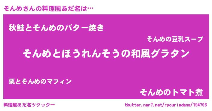 | 胡散臭い通販商品みたいなあだ名 | 『来世でも幸せになれる健康食品…その名も「そんめ」』 |