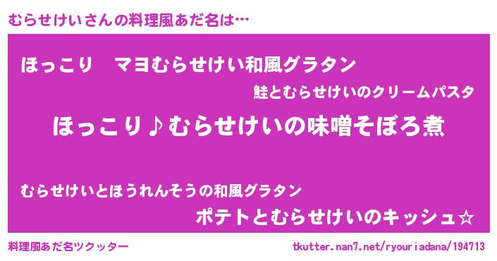 | 男性向けラノベタイトル風あだ名 | 『むらせけいの憂鬱』 |