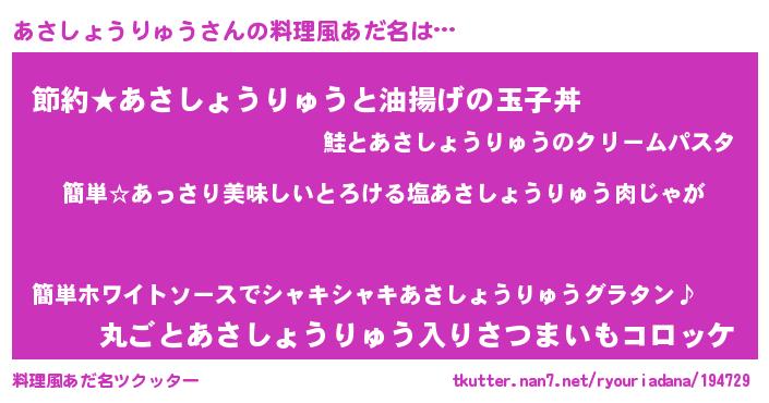 | ヘコむあだ名 | 『あさしょうりゅう(笑)』『あさにー』 |