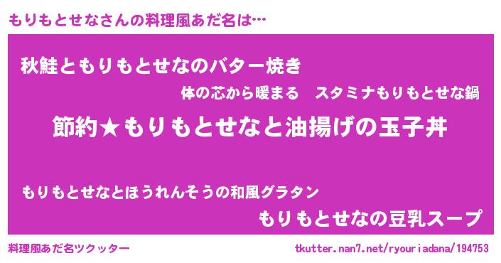 | ヘコむあだ名 | 『もりふぇ~』『もりもとせな(笑)』 |
