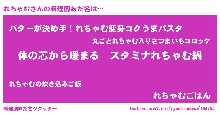 | 男性向けラノベタイトル風あだ名 | 『やはりれちゃむの青春ラブコメはまちがっている 』 |
