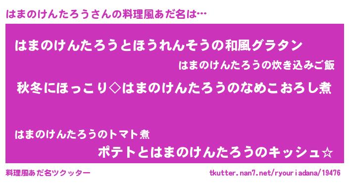 | 意味不明あだ名 | 『ニラ科はまのけんたろう属』 |