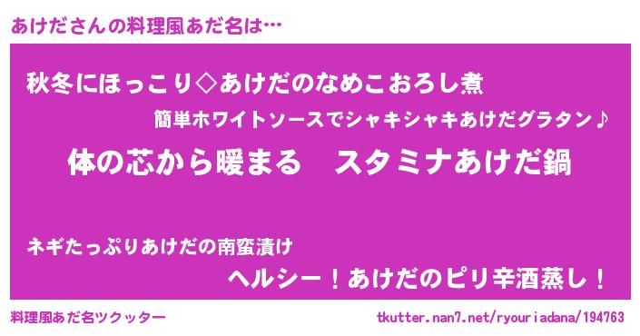 ポケモン風あだ名 | 『アケダダネ』『アケゴンZ』 |