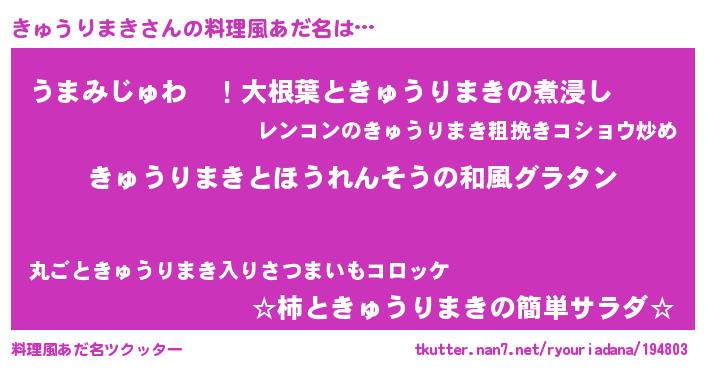 | ヒーロー風カッコイイあだ名 | 『ウルトラきゅうりまきマン』 |