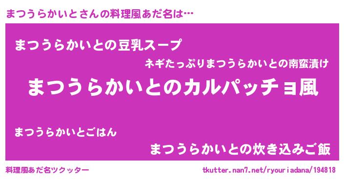 | ポケモン風あだ名 | 『マーツイ』『ヒマツウラカイト』 |