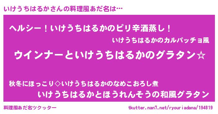| ヘコむあだ名 | 『なまこ酢』『いけにー』『いけ太郎』 |