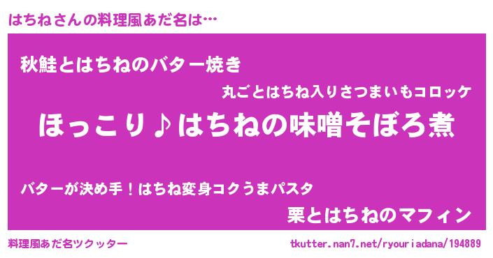 | 男性向けラノベタイトル風あだ名 | 『はちねの憂鬱』『はたらくはちねさま!』 |